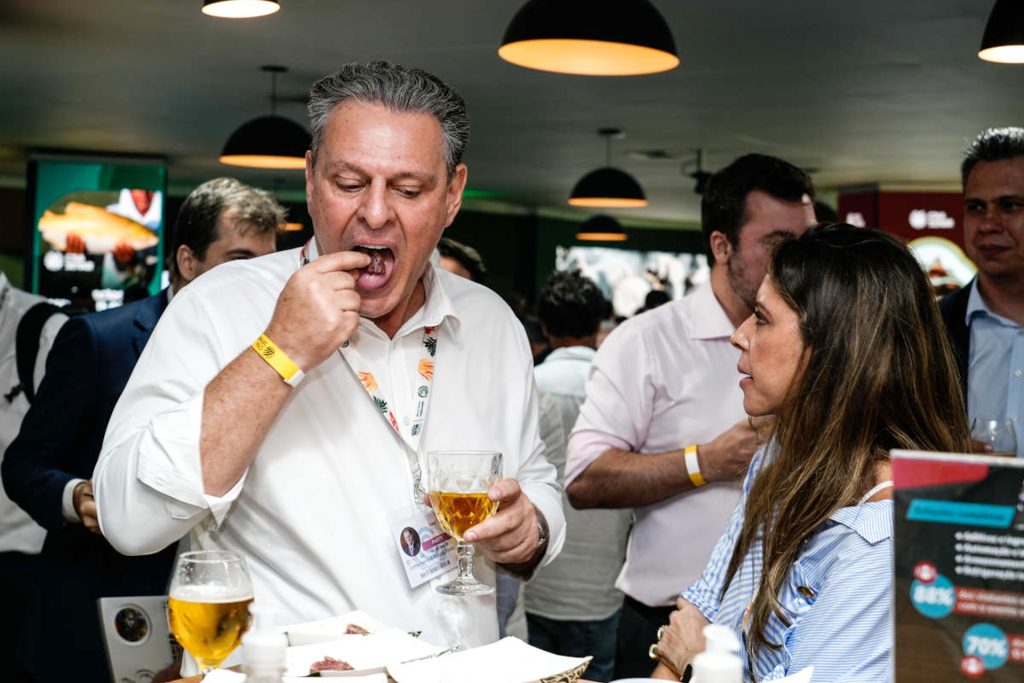 Carlos Fávaro, ministro de Agricultura, asistió a la parrillada que organizó el sector ganadero en la AgriZone durante la COP30. Foto: Fernando Martinho/Repórter Brasil