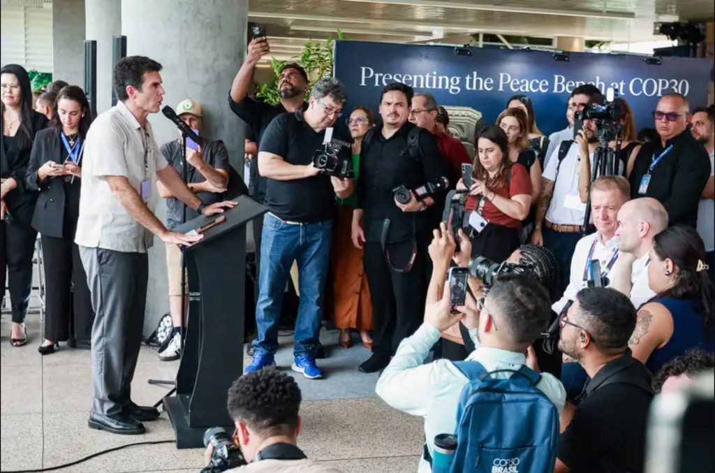 Con el flamante Parque de la Ciudad como escenario, con árboles recién plantados y columpios infantiles de colores vivos, Barbalho firmó en la Zona Verde un acuerdo precisamente con la empresa noruega Hydro, accionista de Alunorte, empresa señalada como responsable de verter residuos en el municipio de Barcarena, para cooperar en la lucha contra los incendios e inaugurar un Banco de la Paz. Hecha de aluminio, la obra representaría que «el diálogo es fundamental para enfrentar los mayores desafíos del mundo», tal y como explicó en la ceremonia de inauguración Kjersti Fløgstad, directora del Centro Nobel de la Paz, una de las instituciones asociadas a la iniciativa.