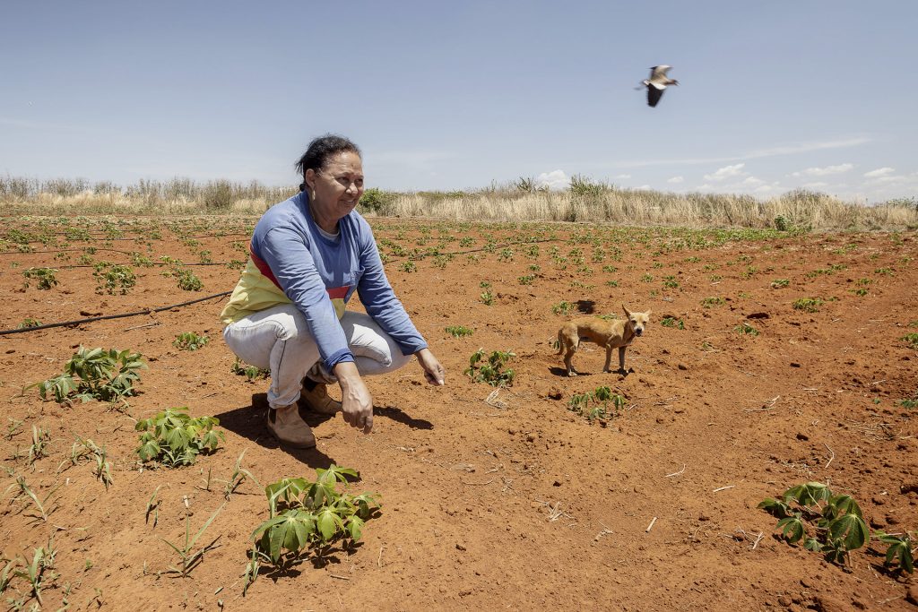 Catarina Antônio de Souza, de 58 anos, mãe de Juliana, disse que a pulverização do veneno acaba com as hortas que ela procura cultivar nos fundos de sua casa de lona. “As plantações, tudo morria de veneno. Queimava tudo as nossas plantas. Minha horta ficava toda queimada de veneno. Eu plantava uma horta de hortaliça, de alface, cenoura, beterraba. Tinha uma época que dava certo. Mas tinha uma época que eles passavam veneno até de avião. E nos mandiocais de minhas hortas, minhas plantações, plantavam, plantavam e não conseguiam colher.”