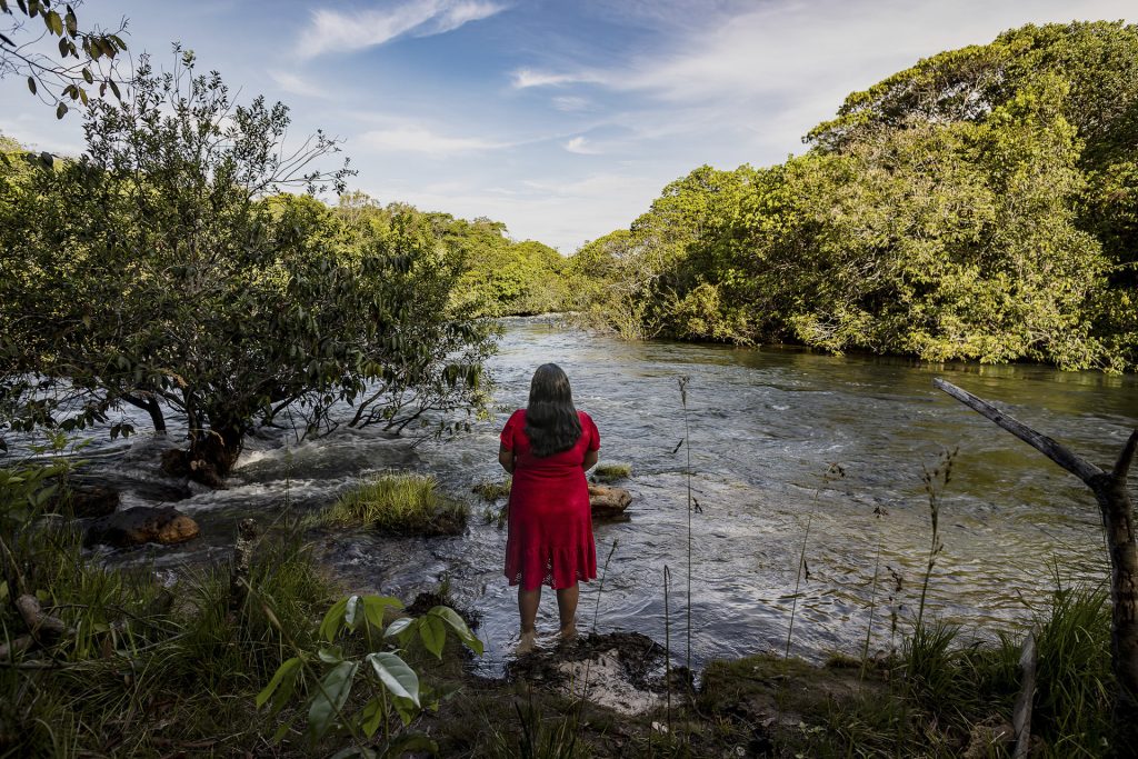 “Lá pra cima tem muitas fazendas. Lógico, tudo que eles plantam, junto com a enxurrada da chuva, vem pra cá. Mas eu não tenho outra opção. […] Eu não me sinto segura [com a água] porque, na época da enchente, isso aqui fica preto. Dá diarreia, dá ânsia de vômito. Mas eu vou fazer o quê? O agrotóxico vem lá de cima. E roda tudo aqui pra baixo.”